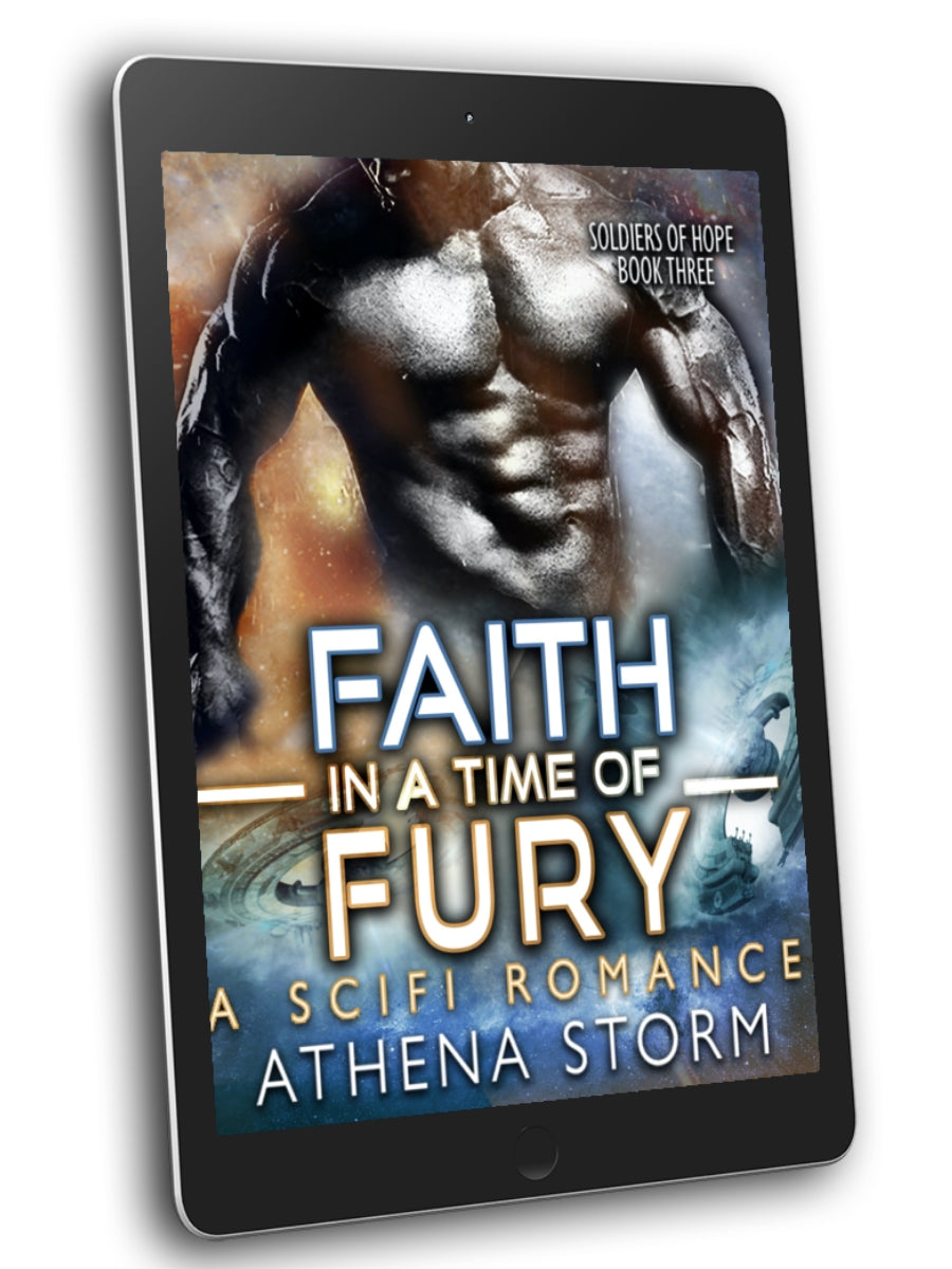 Faith In A Time of Fury is the third book within the Soldiers of Hope series set in the Athenaverse. It can be read as a standalone, but it shares the same universe that you’ve found in other books. This book features a romance of an alpha male alien warrior, a smart, sassy human woman. Expect to see characters you’ve come to love pop in during the story. No cheating and HEA guaranteed!