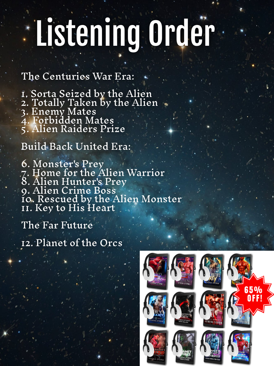 Blast off into a galaxy of passion and adventure with this Athena Storm audiobook bundle! If you love action-packed science fiction romances featuring powerful, alpha alien warriors who will stop at nothing to protect their fated mates, you’re in for a treat. These slow-burn romances are filled with heart, humor, and intensity that will sweep you off your feet and take you far from the everyday. Whether you’re a die-hard fan or new to the Athenaverse, this bundle is the perfect entry point to dive into an unforgettable world of love and cosmic battles. Get ready to escape into the stars!